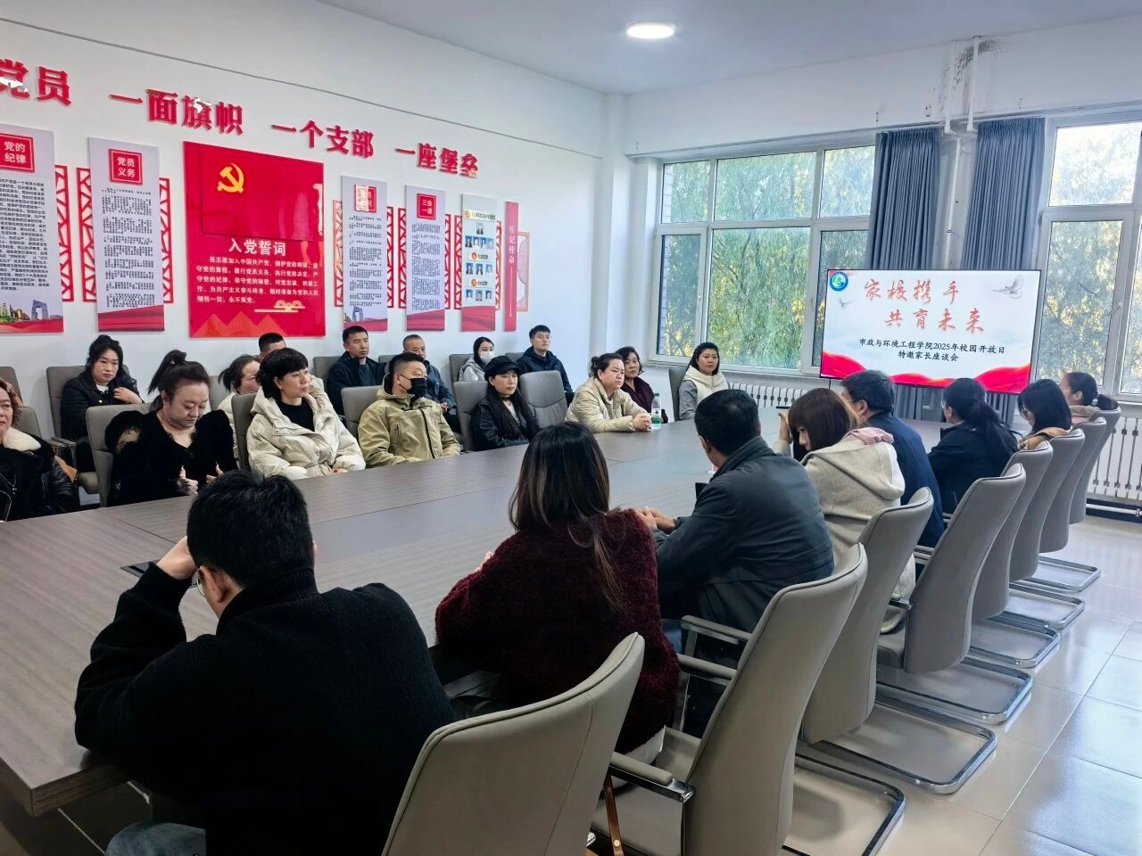 为搭建家校沟通桥梁,凝聚育人合力,10月26日,市政与环境工程学院以校园开放日为契机,在学勤楼310会议室组织召开“家校携手、共育未来”特邀家长座谈会。学院2023级、2024级家长代表,学院院长李亚峰、党总支副书记、副院长于婷、副院长张芸栗、院长助理于磊鑫、全体教研室主任及辅导员共同参会,共话学生成长与发展。
